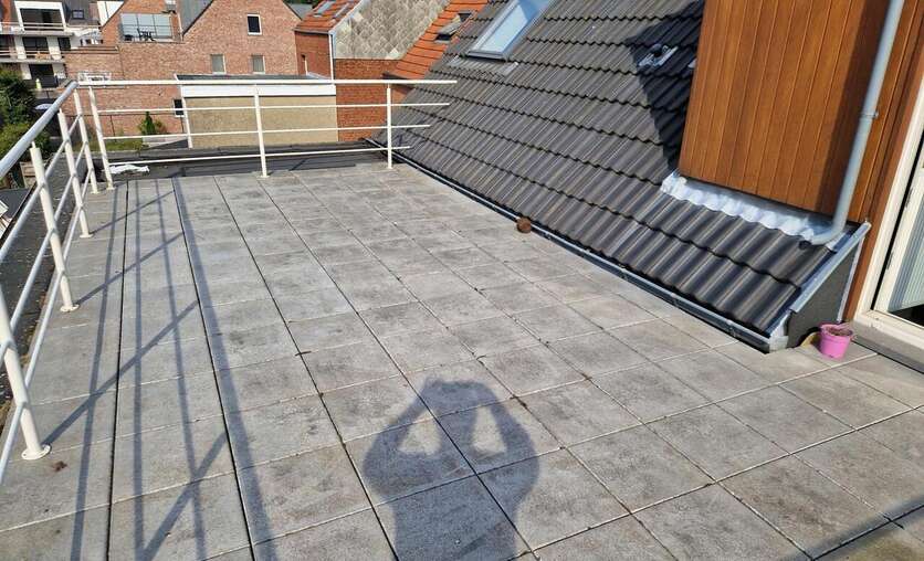 Dit aangenaam verzorgd dakappartement beschikt over de volgende indeling; inkomhal, living voorzien van een schuifraam met toegang naar het ruim terras, een open keuken, twee slaapkamers en een badkamer voorzien van toilet, een ligbad met douchescherm en een lavabo.