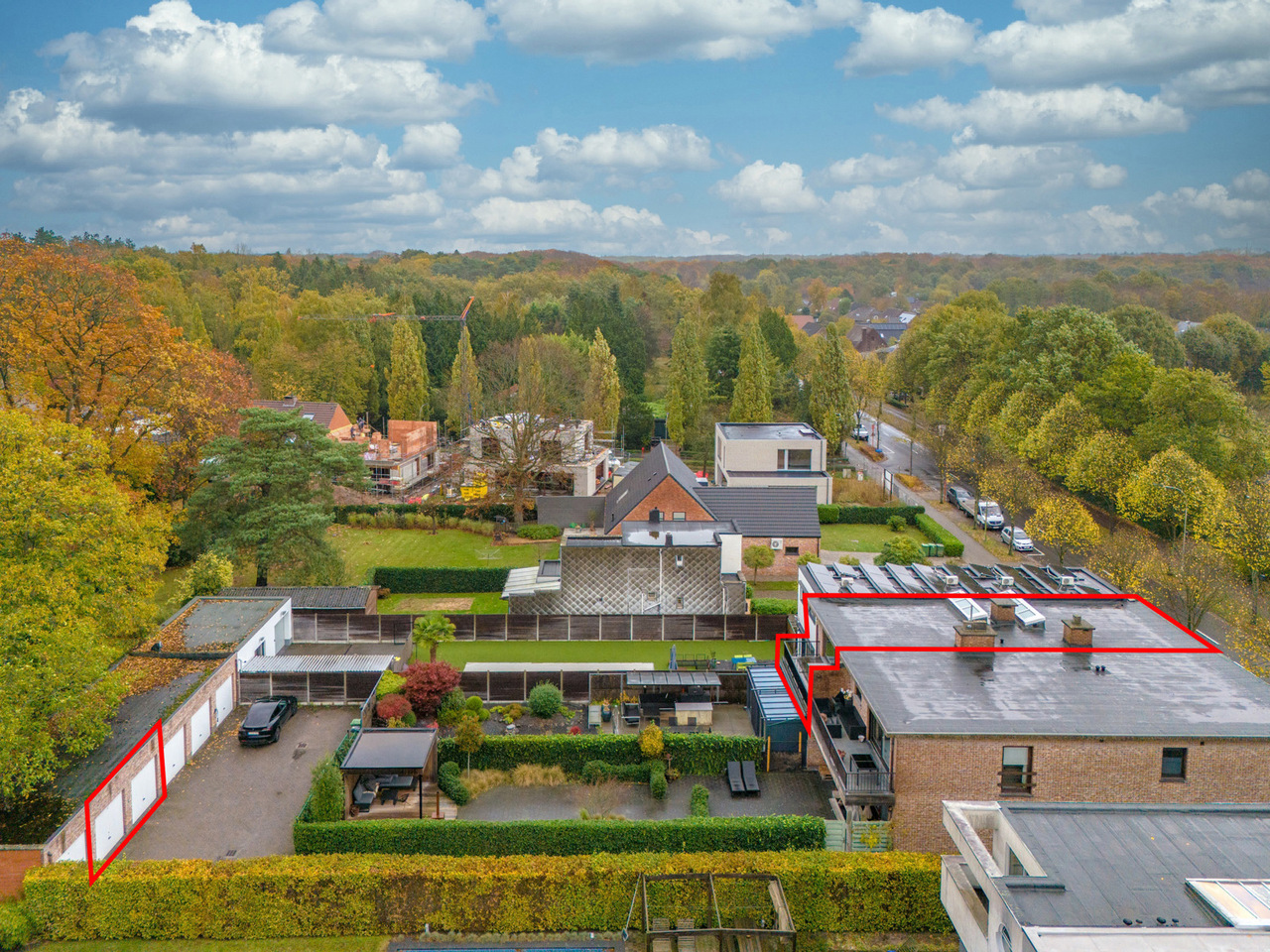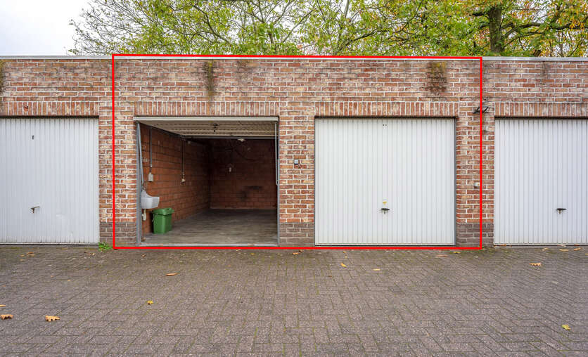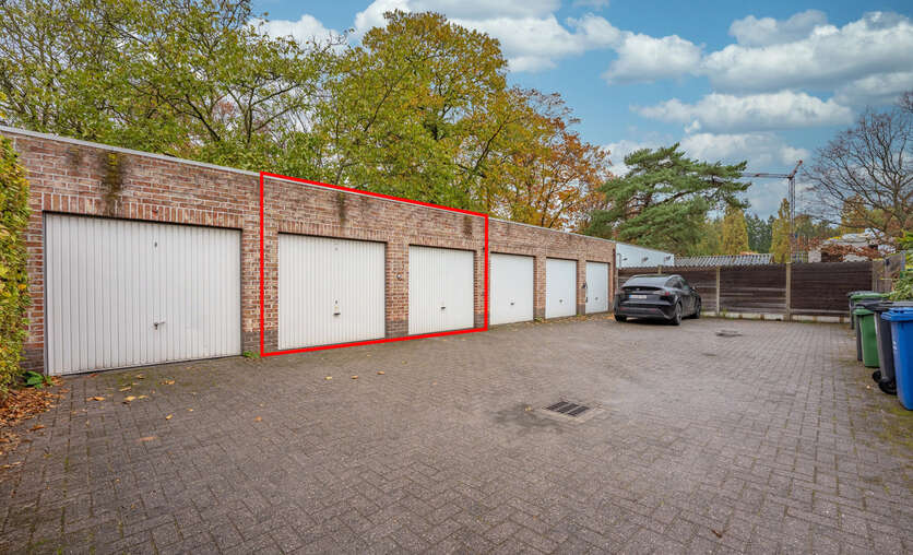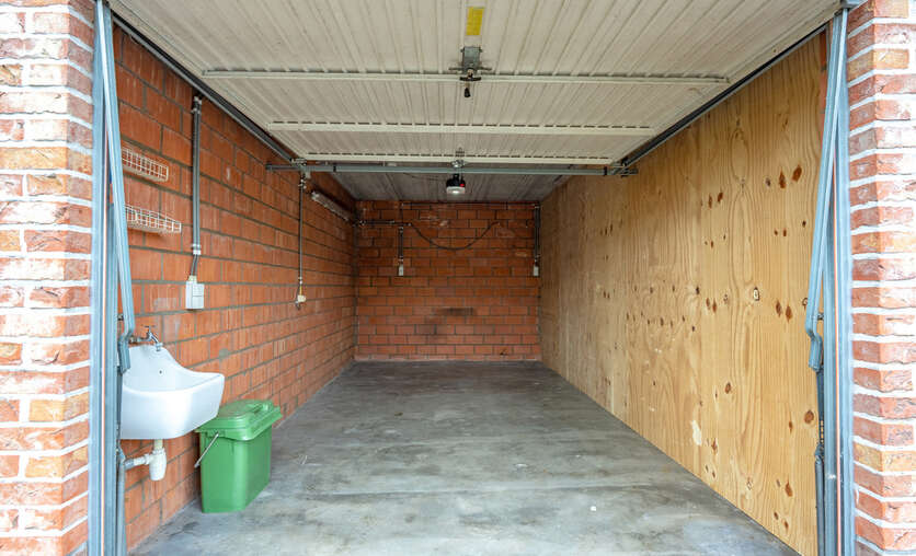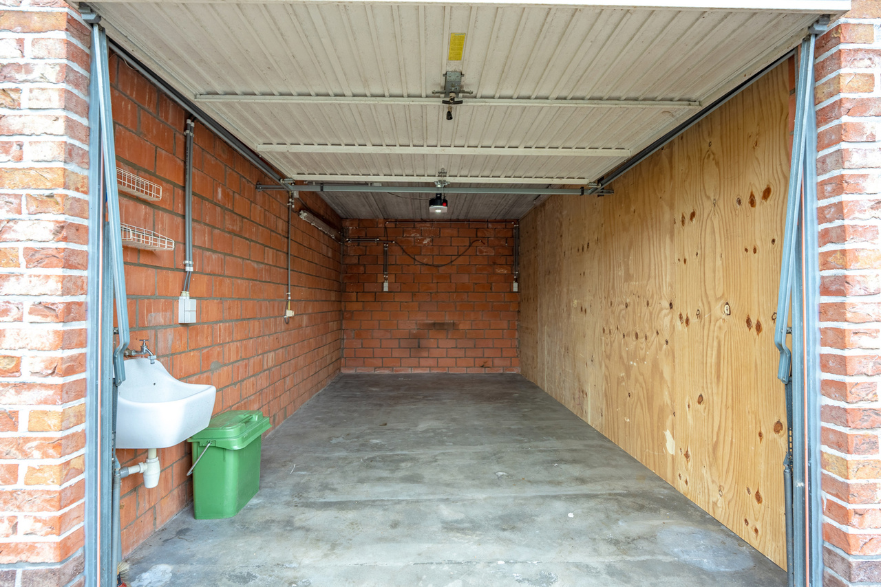 Achteraan het gebouw bevinden zich de 2 garages met sectionaalpoorten (inclusief de prijs)..
