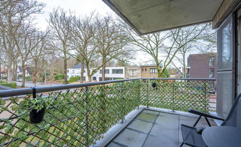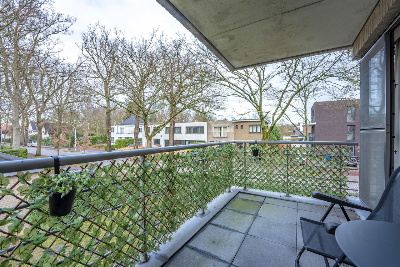 Het terras achteraan (4.3m x 2m) biedt voldoende plaats voor een tafel en 2 stoelen en heeft een mooi aangenaam groen zicht.