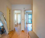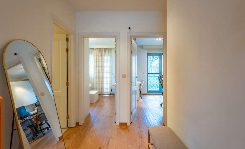 Middels de mooie gevelbreedte, de raampartijen vooraan en zijdelings geniet u van veel lichtinval en een ruimtelijk gevoel. Verder is het appartement voorzien van mooie doorlopende parketvloer.