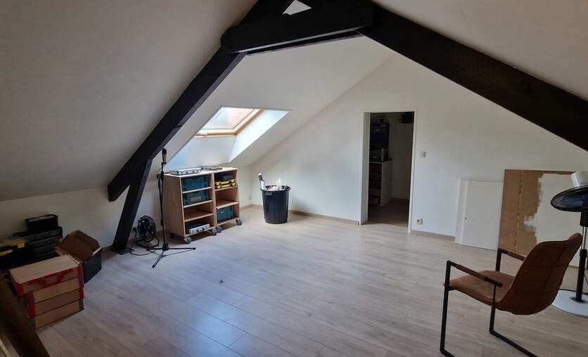 Dit ruim duplex appartement op de eerste verdieping geniet de volgende indeling: inkomhal met apart toilet, zeer ruime living, een keuken, een badkamer en 2 slaapkamers. Via een vaste trap betreden we de zolderverdieping dewelke polyvalent kan worden gebruikt.