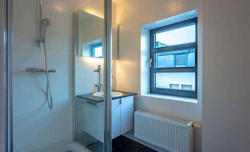 Het appartement werd zeer recent netjes geschilderd en is voorzien van mooie tegelparket op het eerste verdiep en parketvloer op de tweede verdieping.