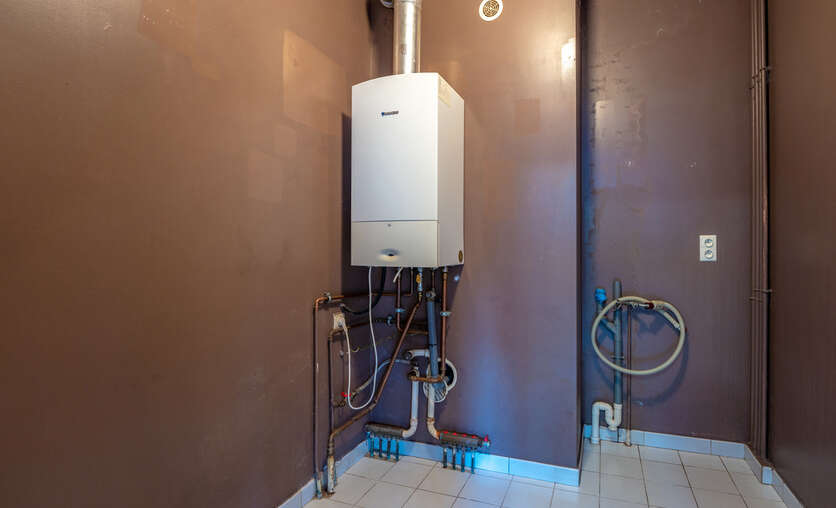 Direct aan de keuken een praktische berging/wasplaats en de CV ketel op gas.