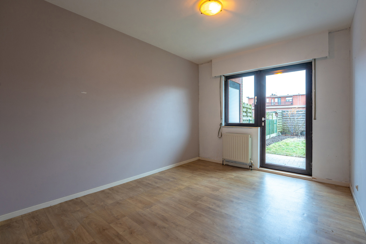 Achteraan twee ruime slaapkamers waarvan één toegang geeft naar de omheinde tuin.