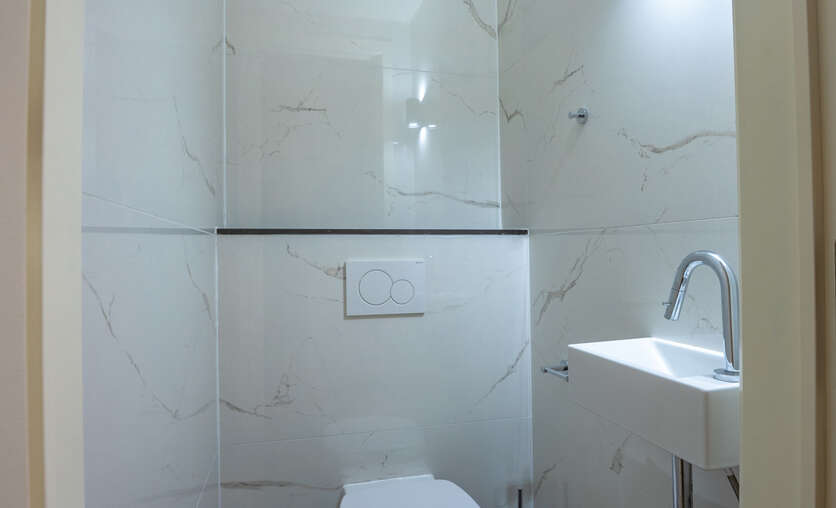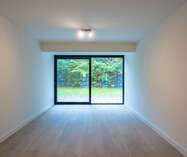Dit gerenoveerd gelijkvloers appartement op wandelafstand van het dorp geniet de volgende indeling: Royale leefruimte (32m²), twee slaapkamers (18m² - 12 m²) beide voorzien van ensuite douchekamer en een apart gasten toilet.