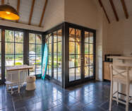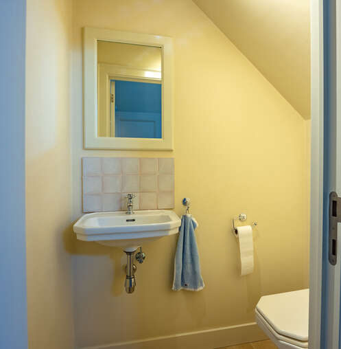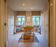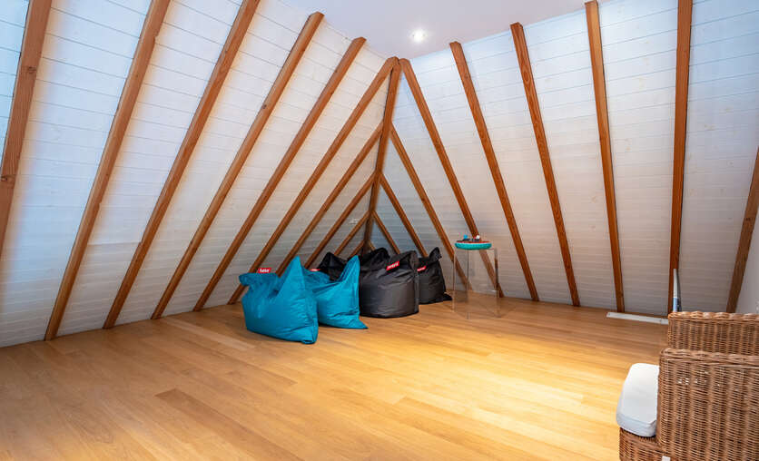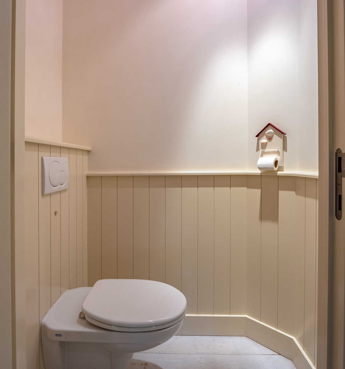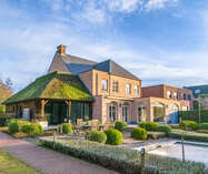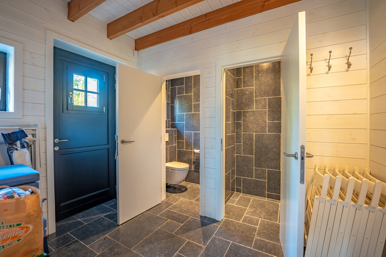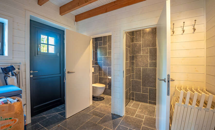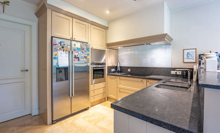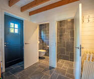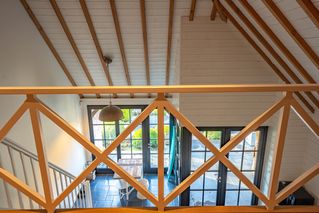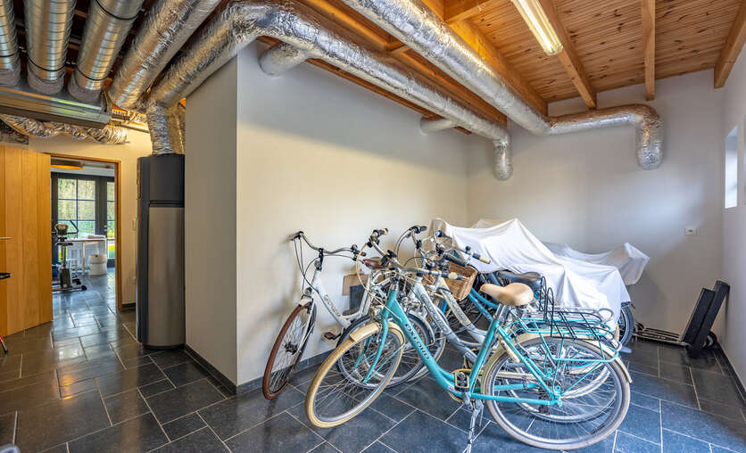 Het bijgebouw werd aangebouwd in 2013 (heden deels fietsenstalling van 22m²) en beschikt over een ruimte met kitchenette en vaste trap naar de gezellige mezzanine, een sanitaire ruimte met apart toilet - aparte inloopdouche.