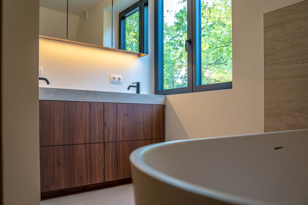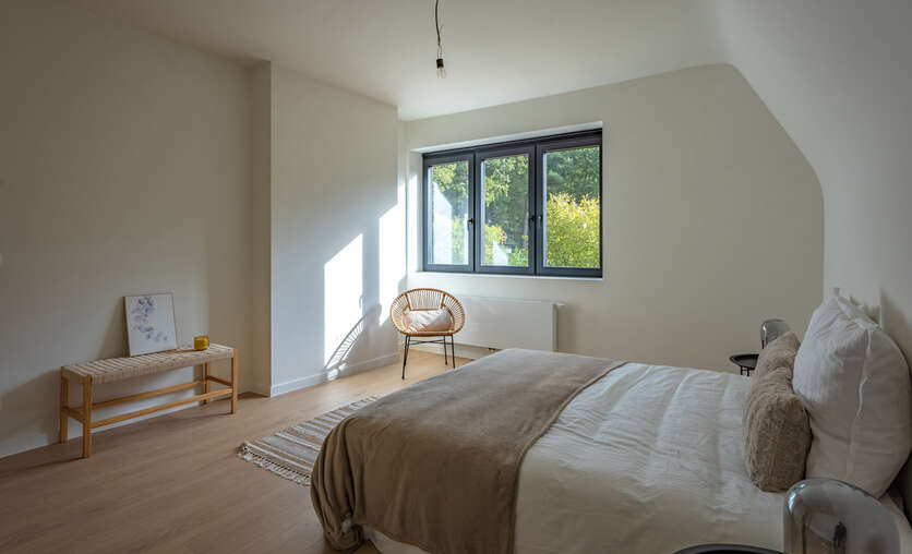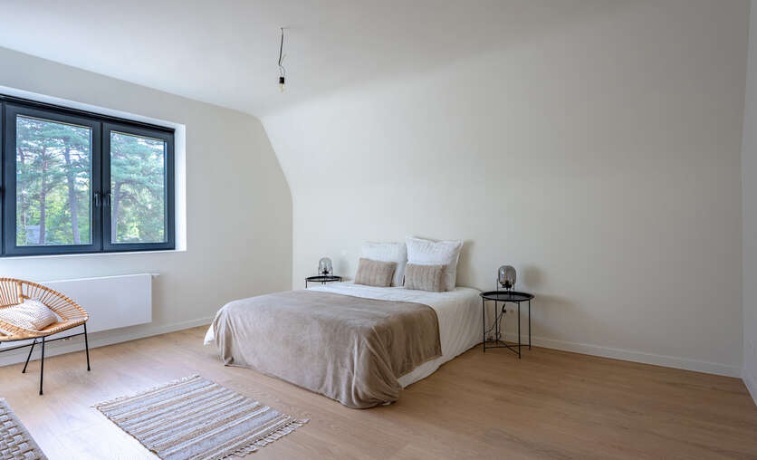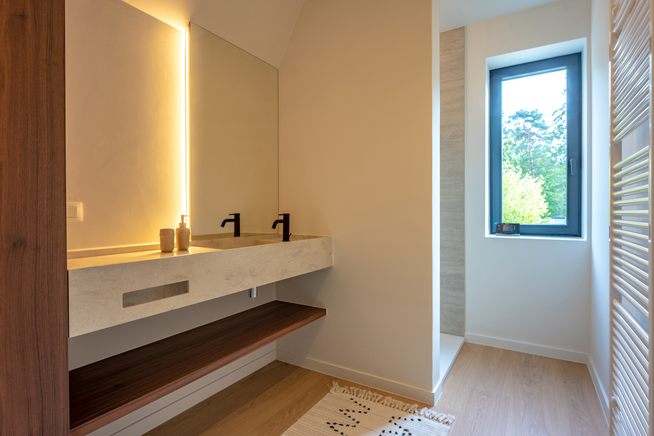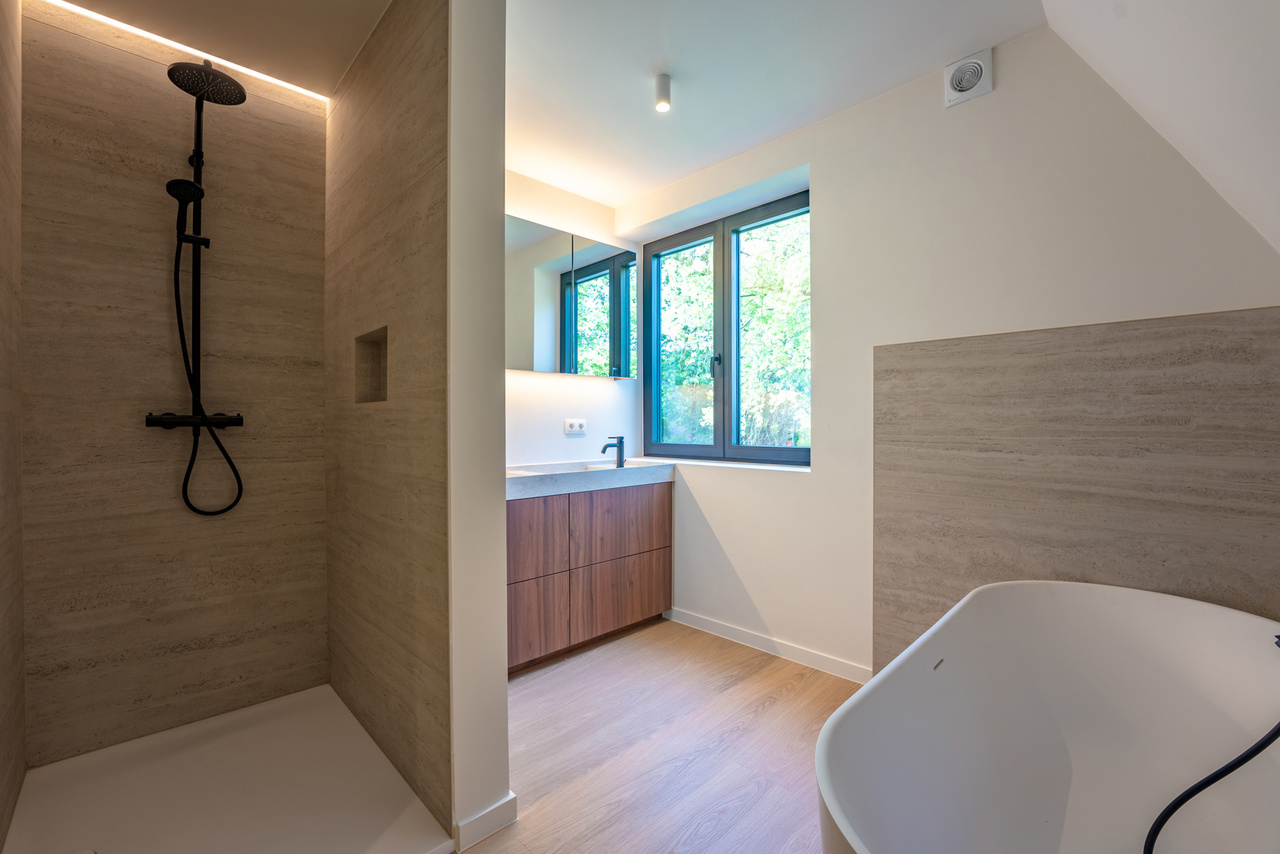 VD1: master - bedroom (19m²) met aanpalende badkamer (dubbele wastafel voorzien van maatwerk, ligbad en douche), tweede slaapkamer (12m) en verder een aparte douchekamer.