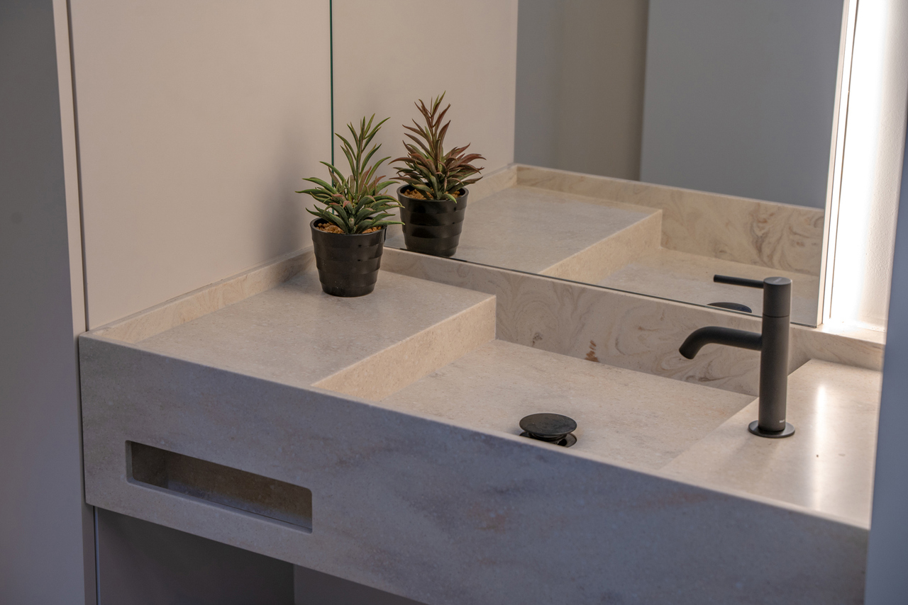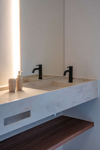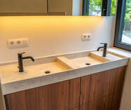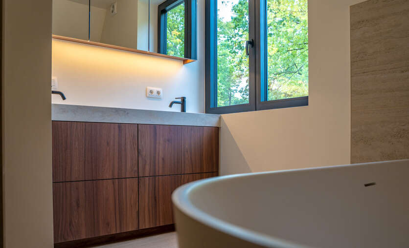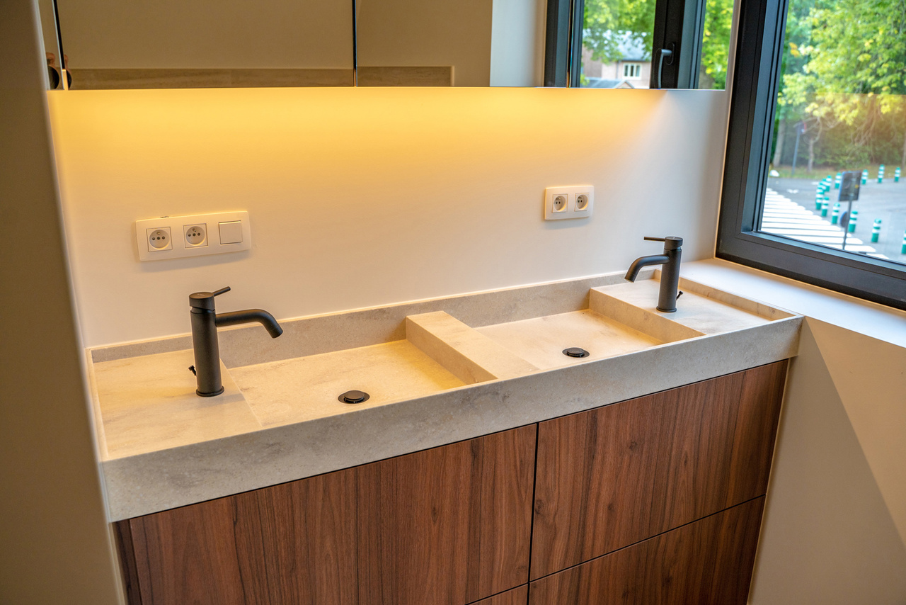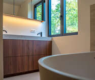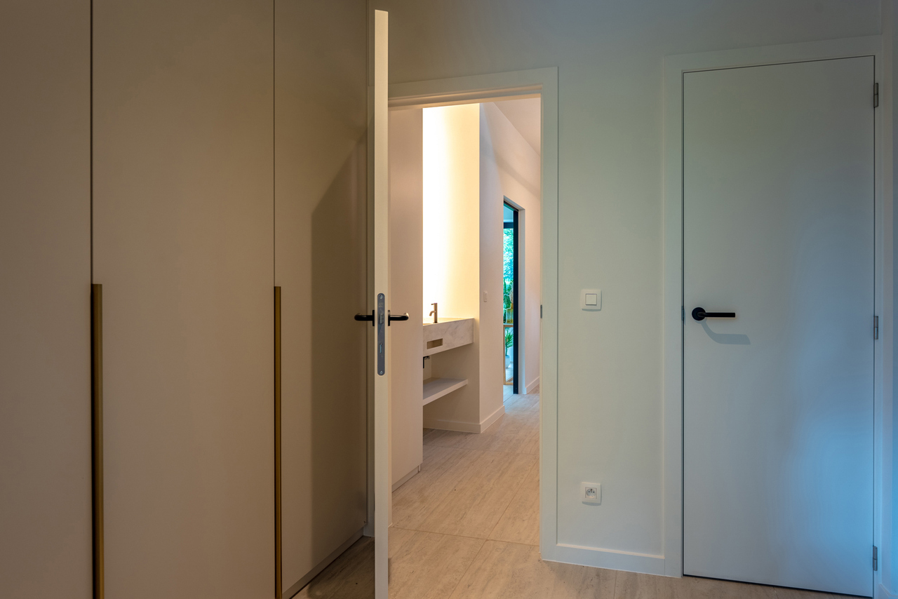 VD1: master - bedroom (19m²) met aanpalende badkamer (dubbele wastafel voorzien van maatwerk, ligbad en douche), tweede slaapkamer (12m) en verder een aparte douchekamer.
