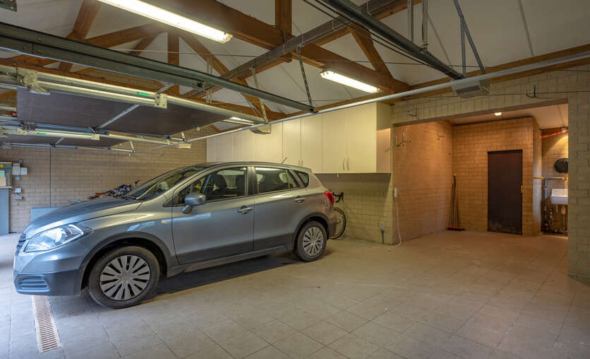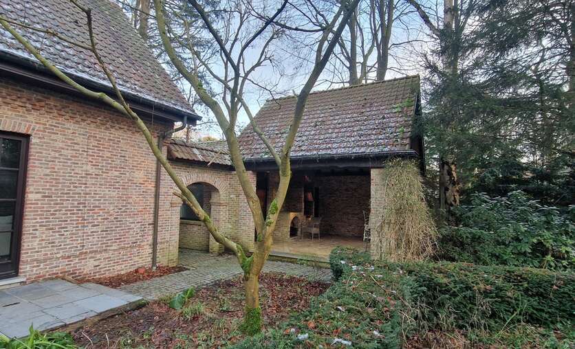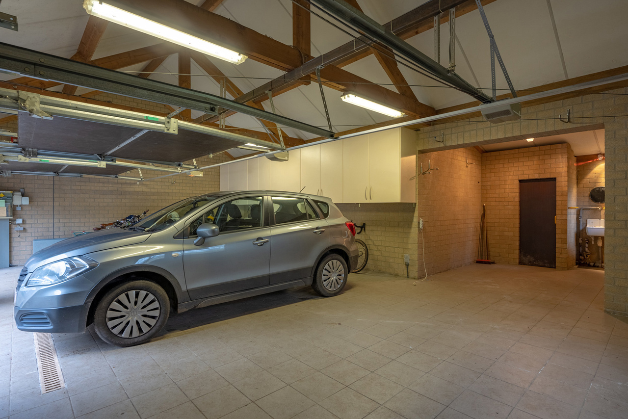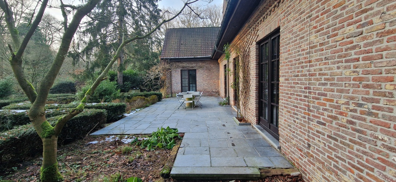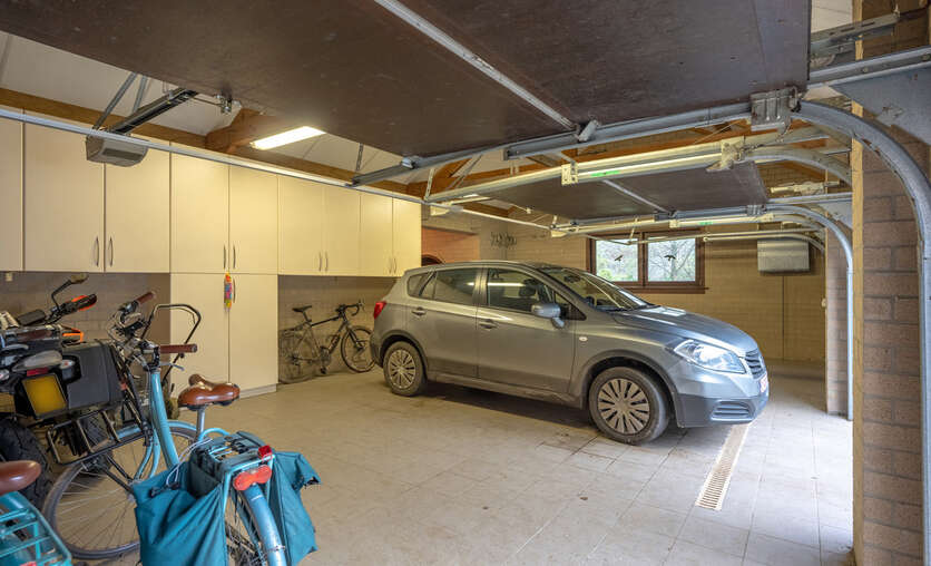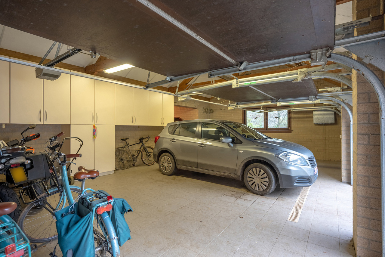 Via een oprijlijn betreedt u het domein met als achterbuur het 149 ha groot Peerdsbos. Midden de oprijlijn bevindt zich de garage voorzien voor 3 wagens (berging en sanitair tevens voorzien).