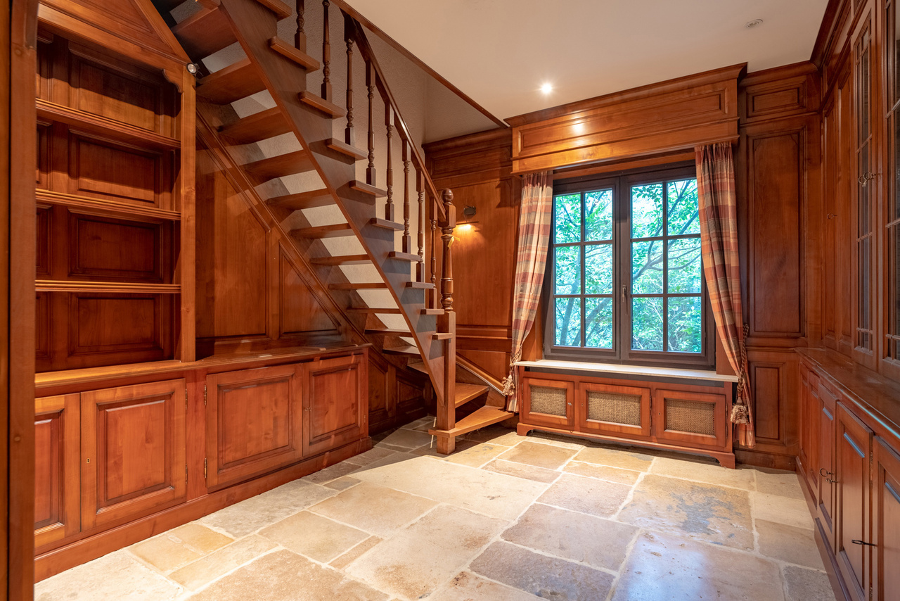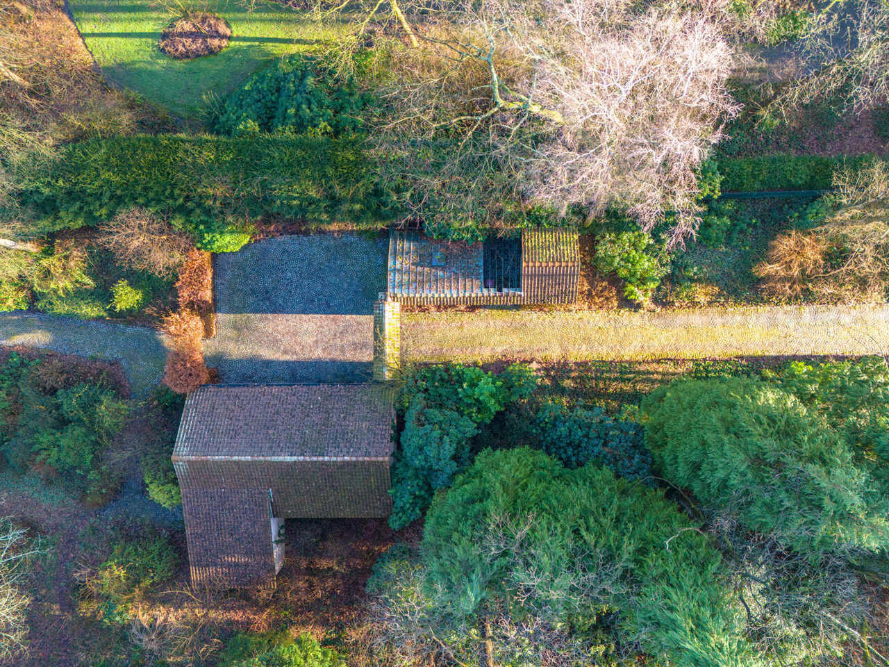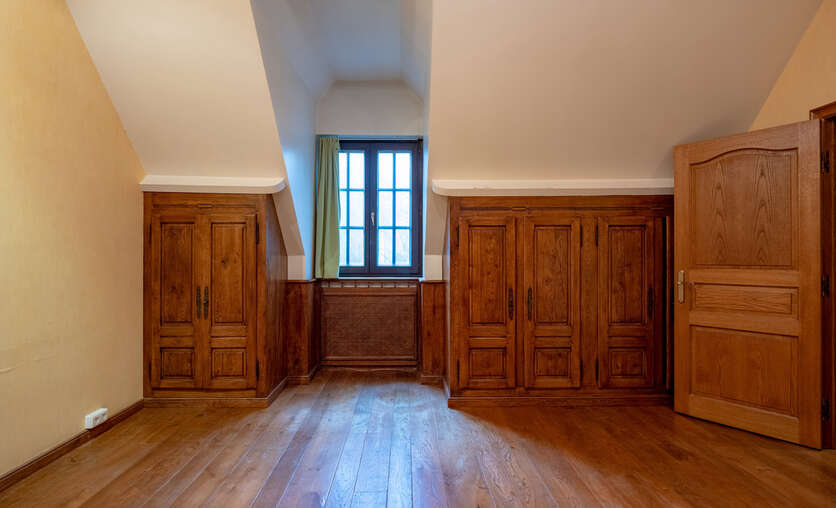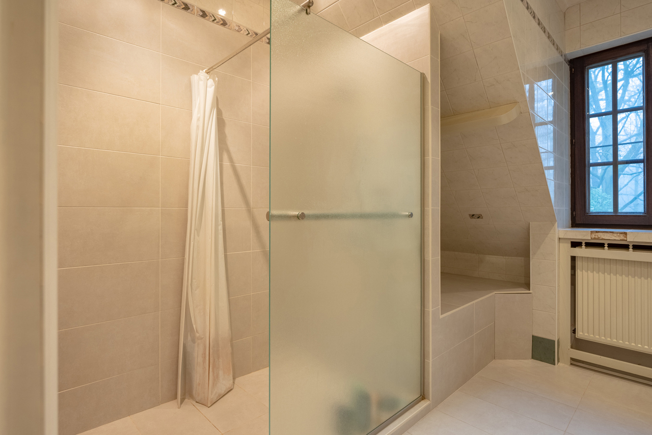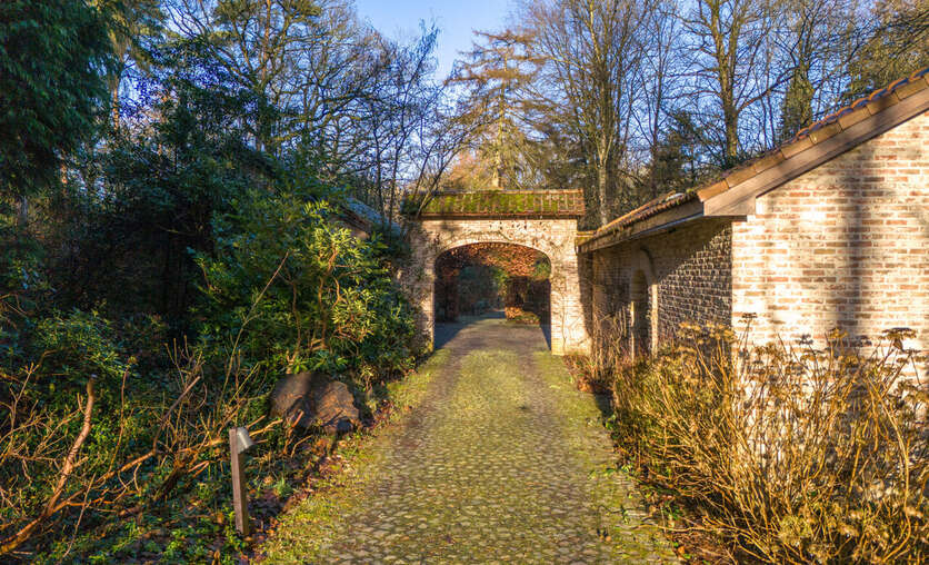 Via een oprijlijn betreedt u het domein met als achterbuur het 149 ha groot Peerdsbos. Midden de oprijlijn bevindt zich de garage voorzien voor 3 wagens (berging en sanitair tevens voorzien).