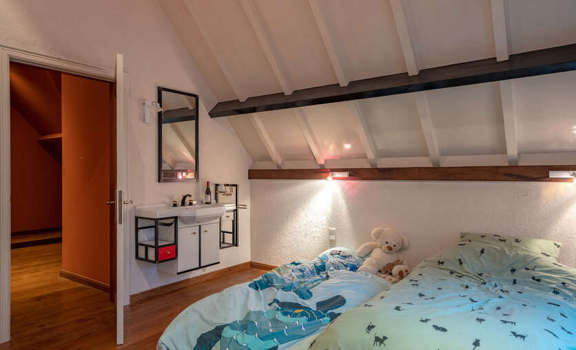 Op het verdiep bevinden zich drie slaapkamers, een apart toilet en een badkamer voorzien van Lavabo en douche.